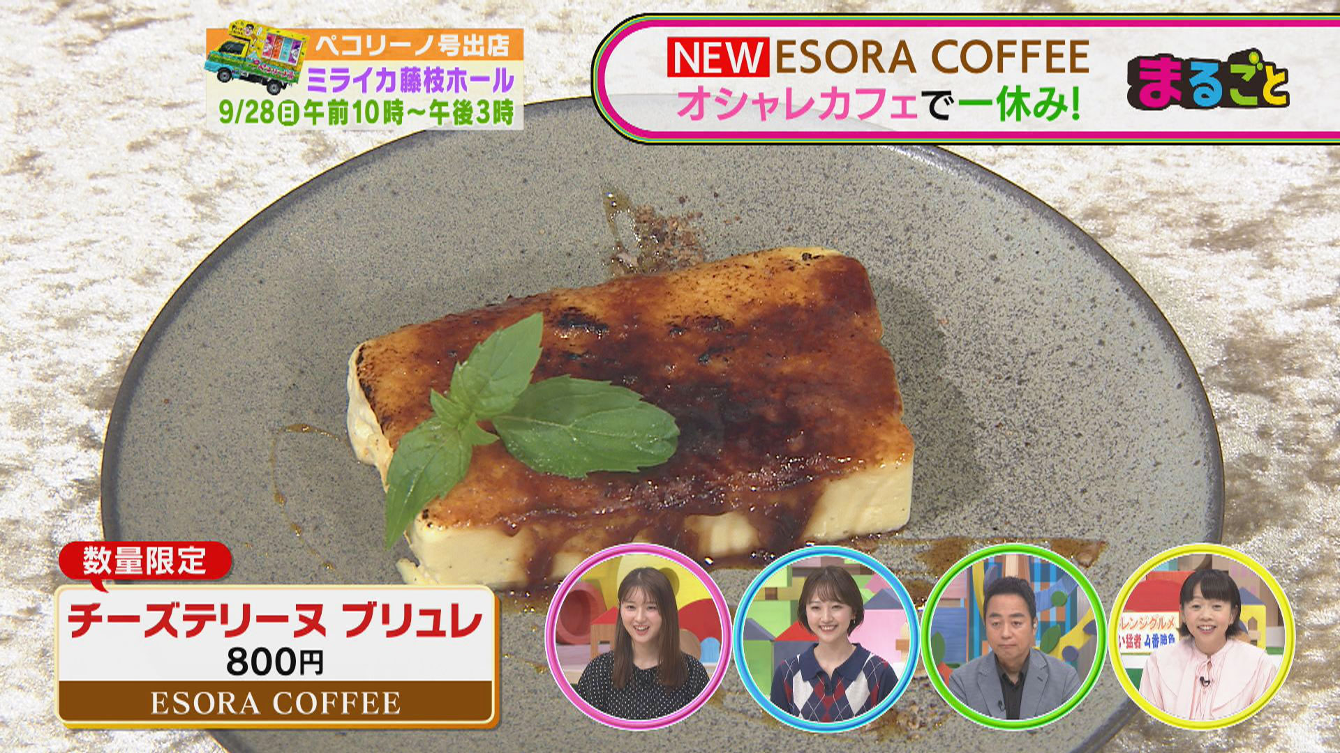 「トレンド」バックナンバー トレンド 2025年09月22日 (mon) 疲れた時は! コーヒーに合う至高のスイーツ 【ESORA COFFEE】 静岡市葵区鷹匠2-8-21 ■[数量限定]チーズテリーヌ ブリュレ…800円 ■グランワッフル…650円 ■塩キャラメルジェラート ワッフル添え…750円 ■フロランタン…400円 ■エチオピア ゲシャ・カルマチ農園…950円