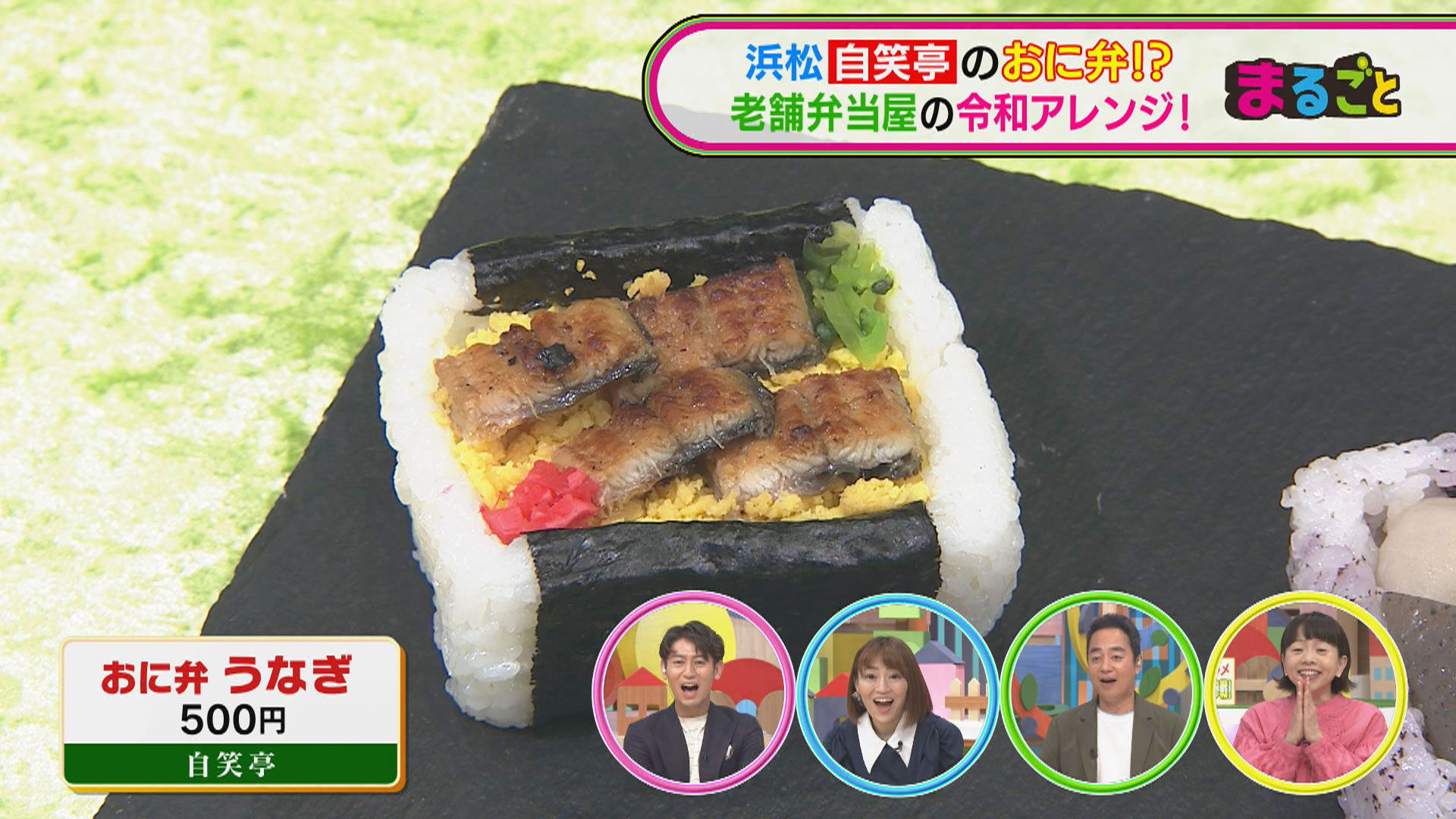 「トレンド」バックナンバー トレンド 2025年09月29日 (mon) 老舗のアレンジ! おにぎり以上お弁当未満!? 【自笑亭】 浜松市中央区神田町518 ■おに弁 うなぎ…500円 ■おに弁 うま煮…250円 ■おに弁 エビチリ…350円 ■おに弁 牛ごぼうしぐれ…350円