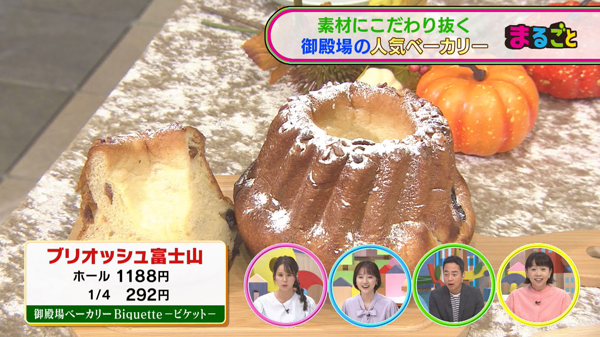 「トレンド」バックナンバー トレンド 2025年10月16日 (thu) 人気ベーカリー! 行楽に!!秋のイチオシパン 【御殿場ベーカリー Biquette-ビケット-】 御殿場市東田中2丁目8-10 ■ブリオッシュ富士山 ホール…1,188円 1/4…292円 ■御殿場卵のクリームパン(1個)…280円 ■御殿場かぼちゃのデニッシュ(1個)…388円