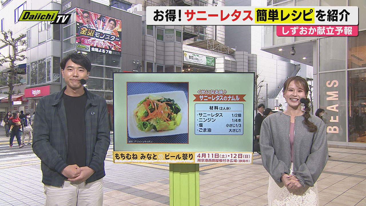 新コーナー「献立予報」。このコーナーは、その日、スーパーで聞いた、今お得な野菜を値段とともに紹介。さらに、それを使った“簡単レシピ”もお伝えします。きょう(4月7日)のおすすめの食材は「サニーレタス」です。