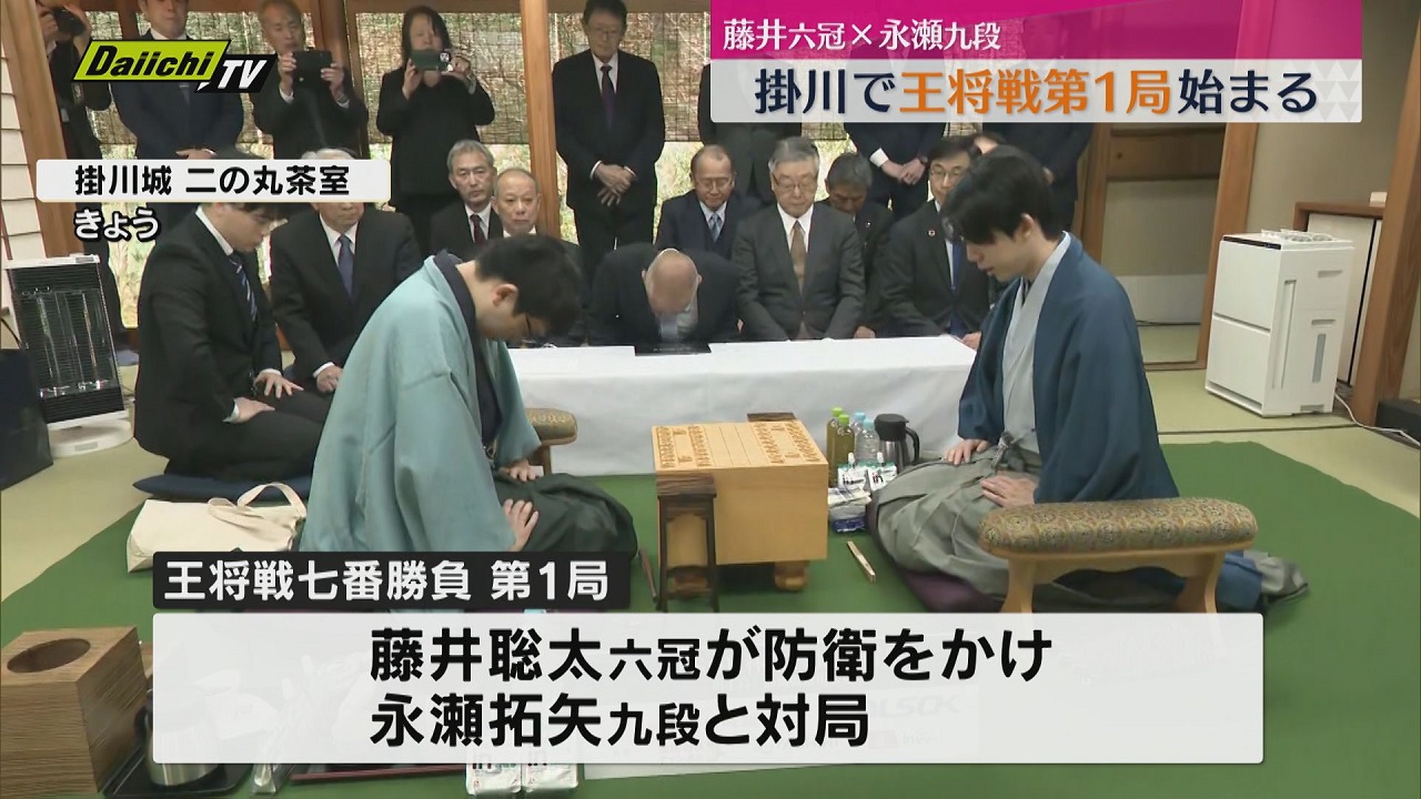 藤井聡太六冠と永瀬拓矢九段による将棋のタイトル戦「王将戦 第1局」が11日掛川市で始まりました。