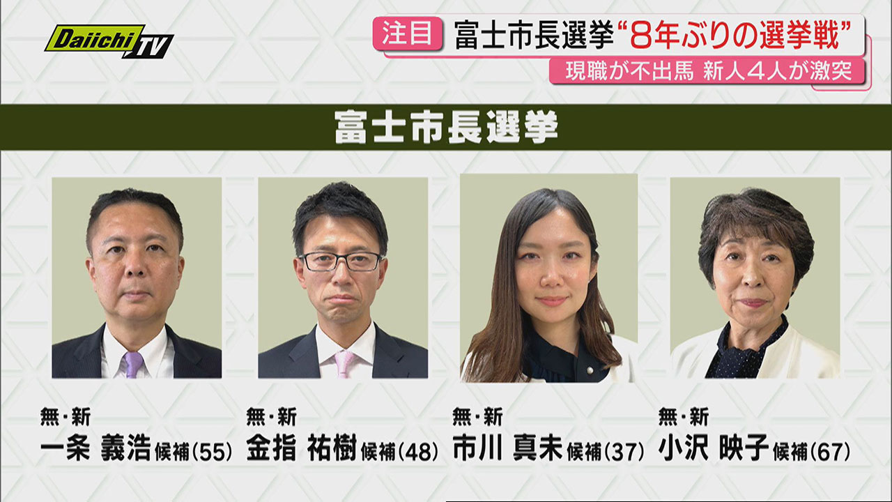 【富士市長選挙】任期満了に伴う市長選は新人4人による8年ぶり選挙戦…人口減少対策や駅周辺再整備など市政課題と候補者の訴えは(静岡)