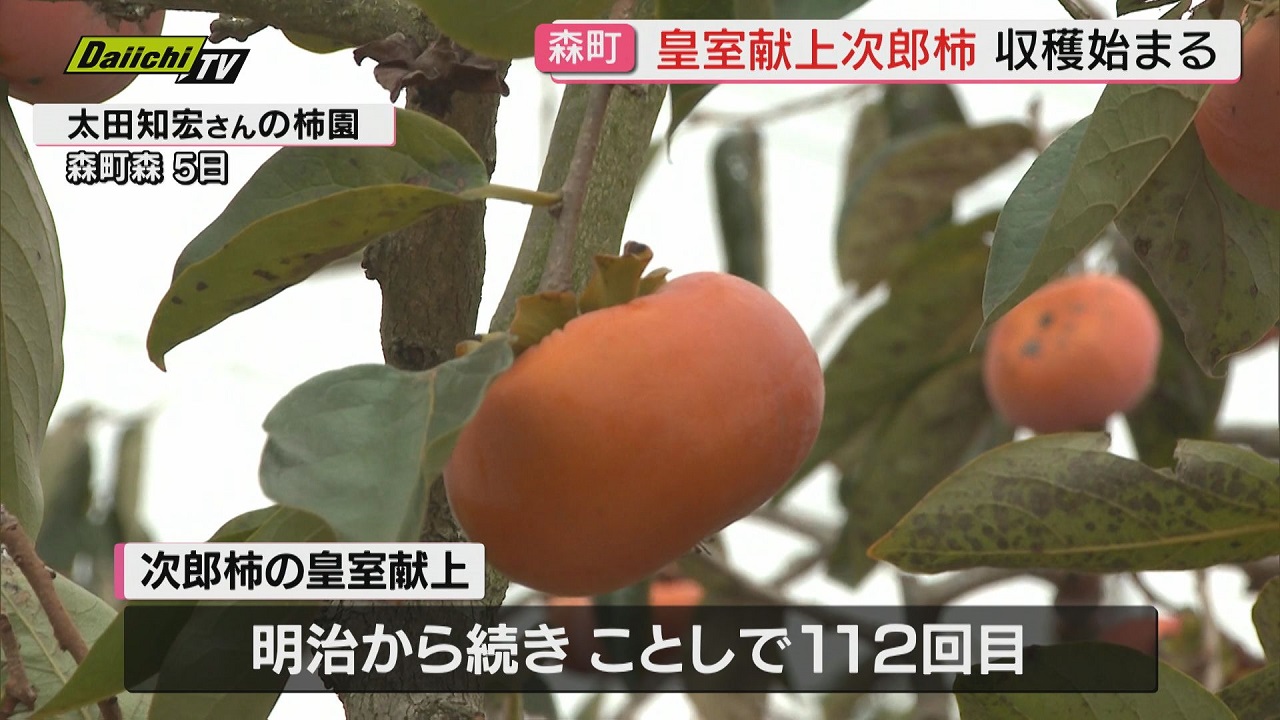皇室に献上する次郎柿の収穫と箱詰めが5日、森町で行われました