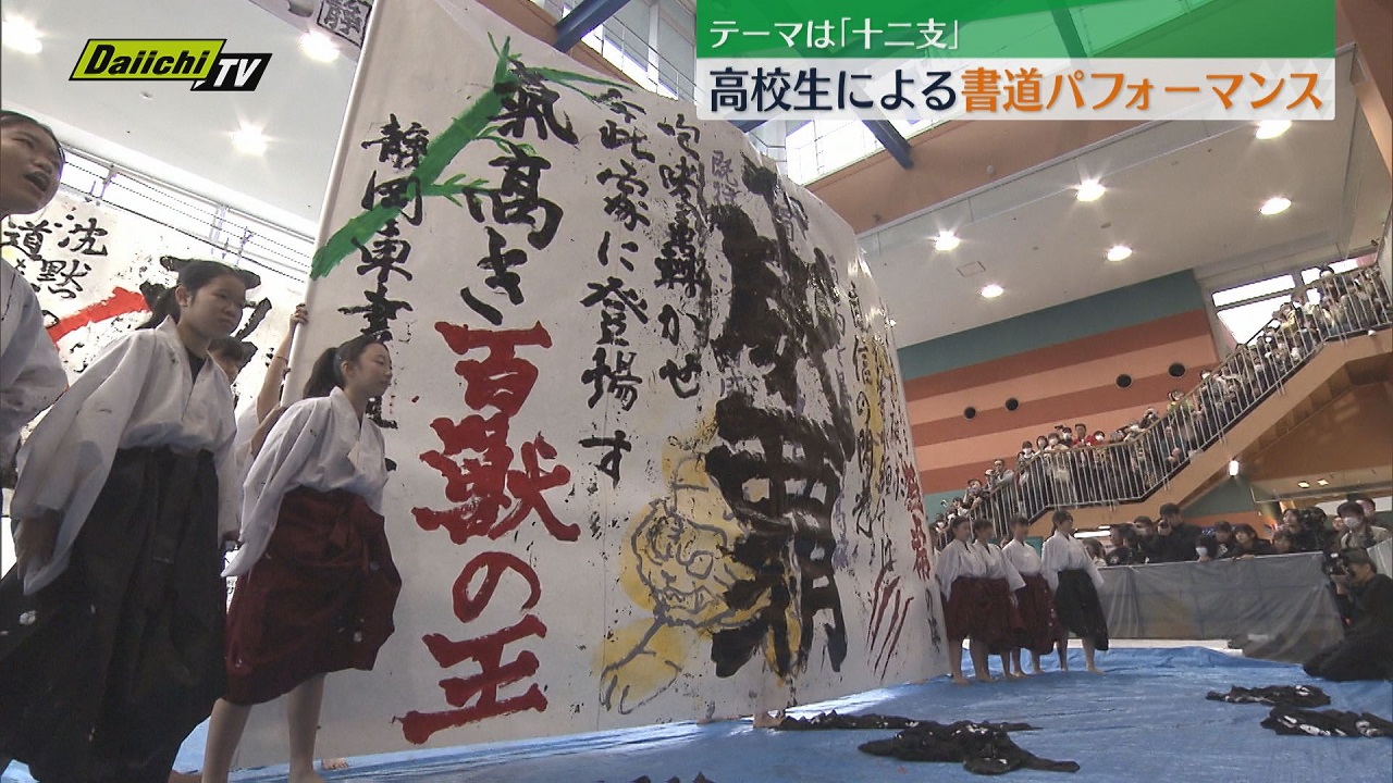 21日、静岡市で全国から集まった高校生の書道チームが技を競う「書道パフォーマンスアワード」が開催され会場は熱気に包まれました。