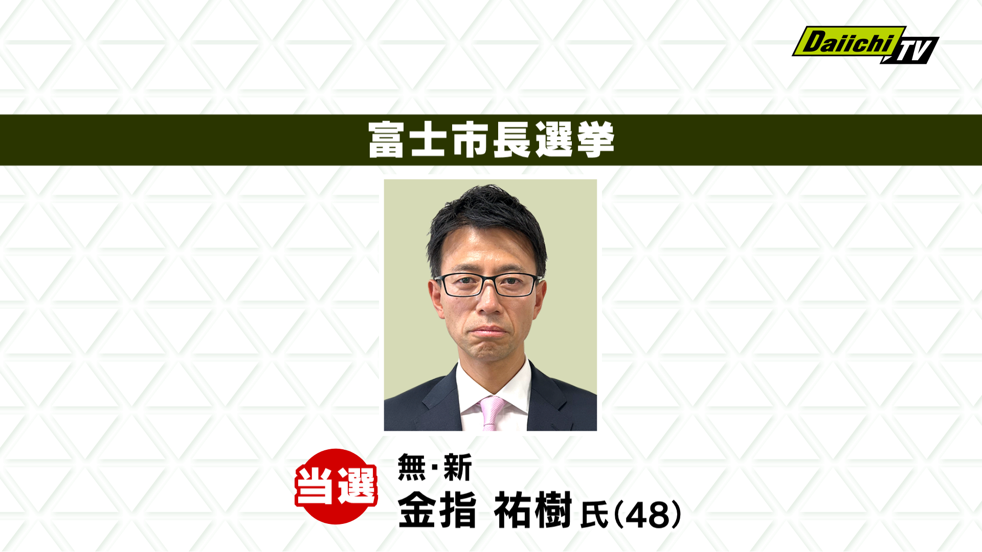 4人の立候補者による選挙戦となった富士市長選挙は、即日開票の結果、新人で元中学校教諭 金指祐樹氏(48)が当選しました。