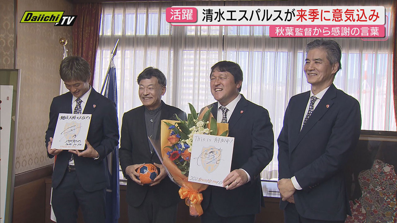 「清水エスパルス」が市長にシーズン終了報告…退任の秋葉監督は熱い声援に感謝の言葉(静岡市)