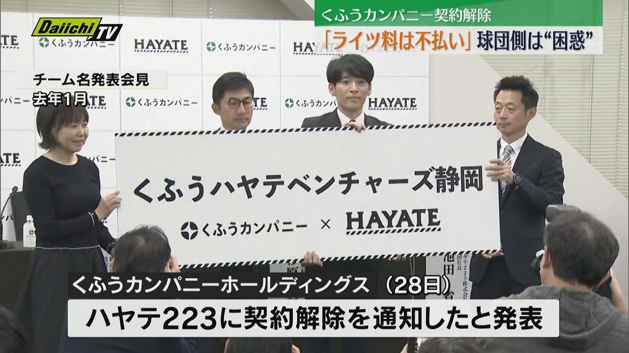 くふうハヤテ球団は、くふうカンパニーからの資本業務提携の解除を受けて、30日、コメントを発表しました。