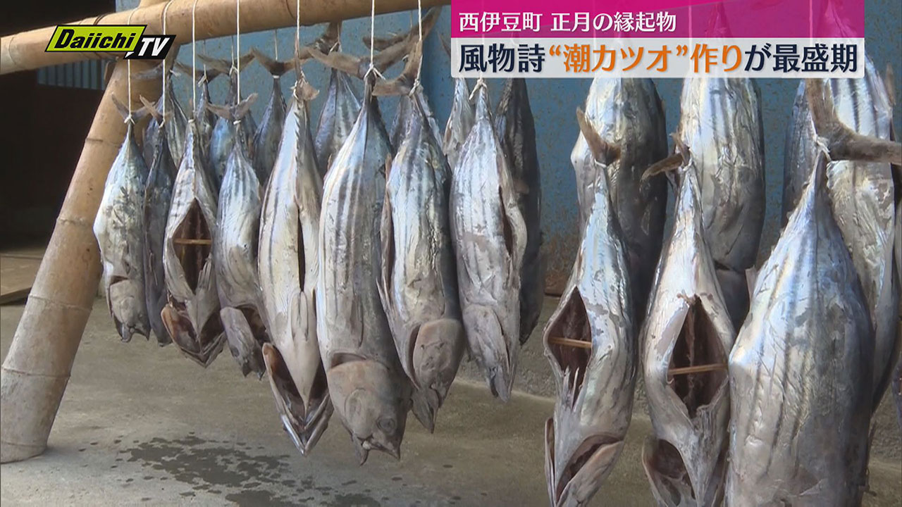 静岡県西伊豆町でこの時季の風物詩「潮カツオ」作りが最盛期を迎えています。
