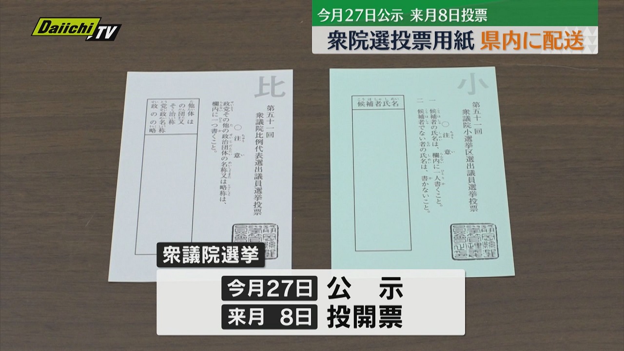 衆議院が23日午後解散され事実上の選挙戦に入りました。1月27日公示2月 8日投票となった衆議院選挙を前に23日、投票用紙が印刷工場から県内各地に配送されました。