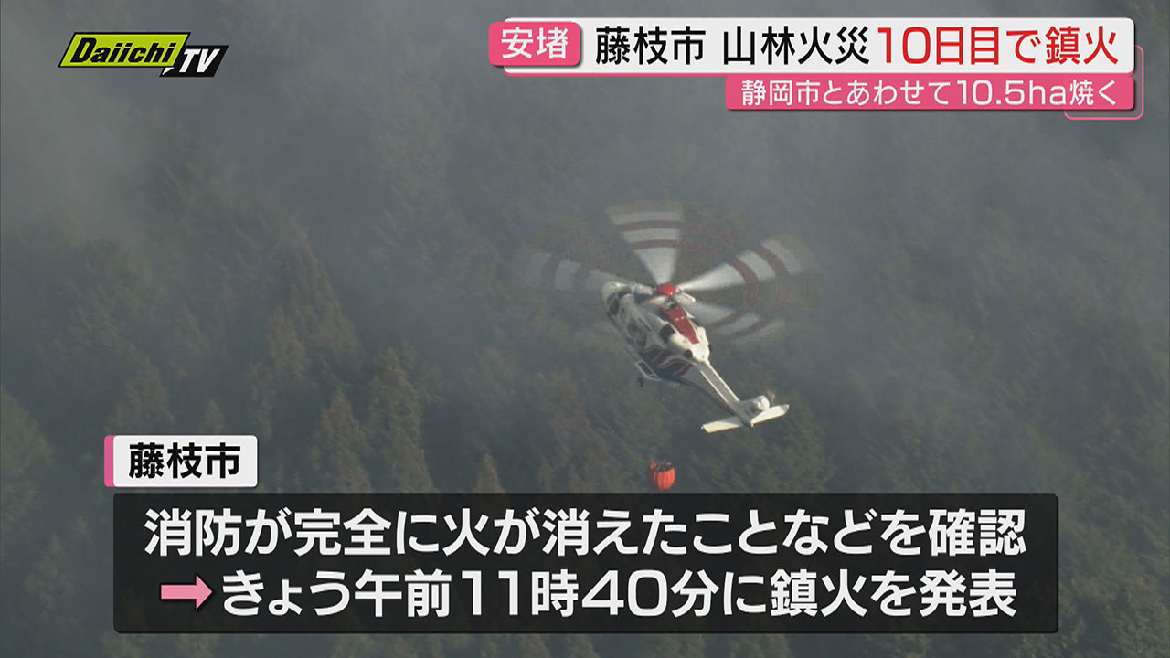 静岡・藤枝市の山林火災の発生から10日目の26日、火が完全に消え再び火が出る恐れがないとして市が鎮火を発表しました。