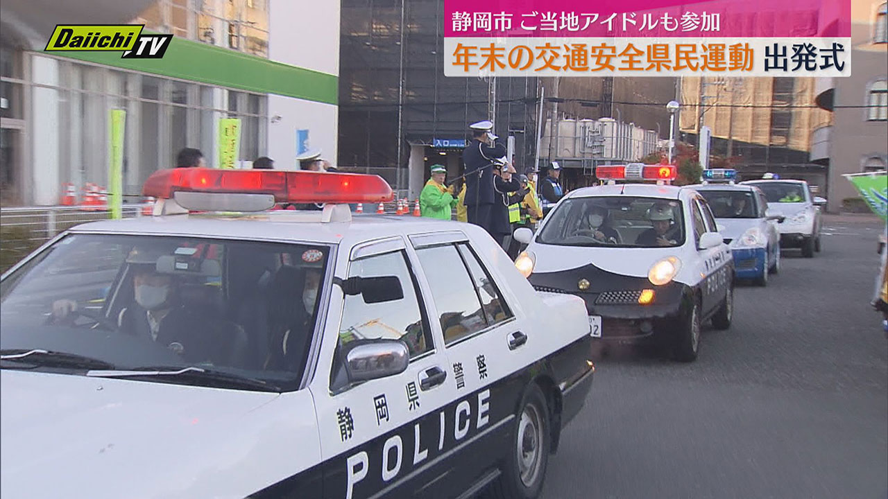 15日から「年末の交通安全県民運動」が始まり、警察官などが出席して静岡市駿河区で出発式が行われました。