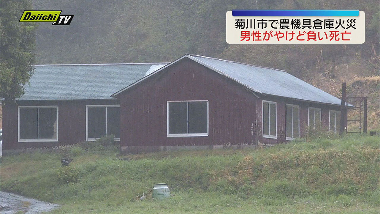 30日午後、菊川市で農機具倉庫の一部を焼く火事があり、この家の70代の男性が顔や腕にやけどを負い、死亡しました。警察などで出火原因を調べています。