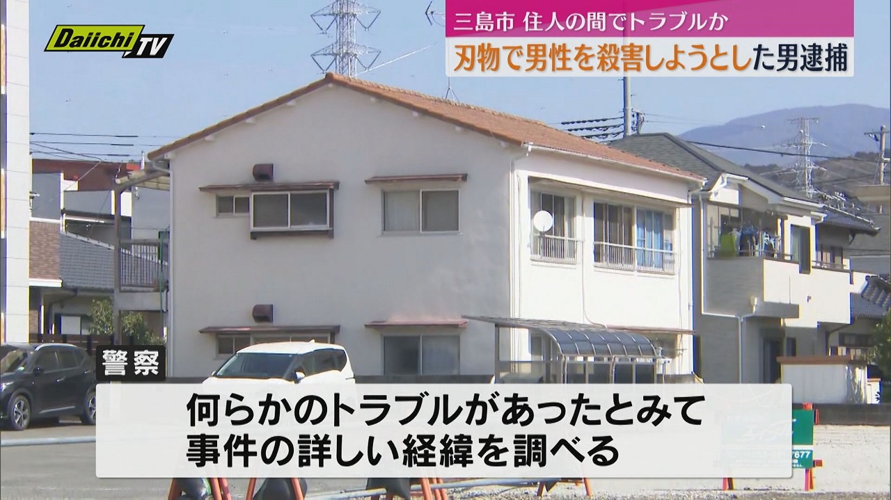 20日、三島市のアパートで別の部屋の住人を殺害しようとしたとして53歳で無職の男が逮捕されました。