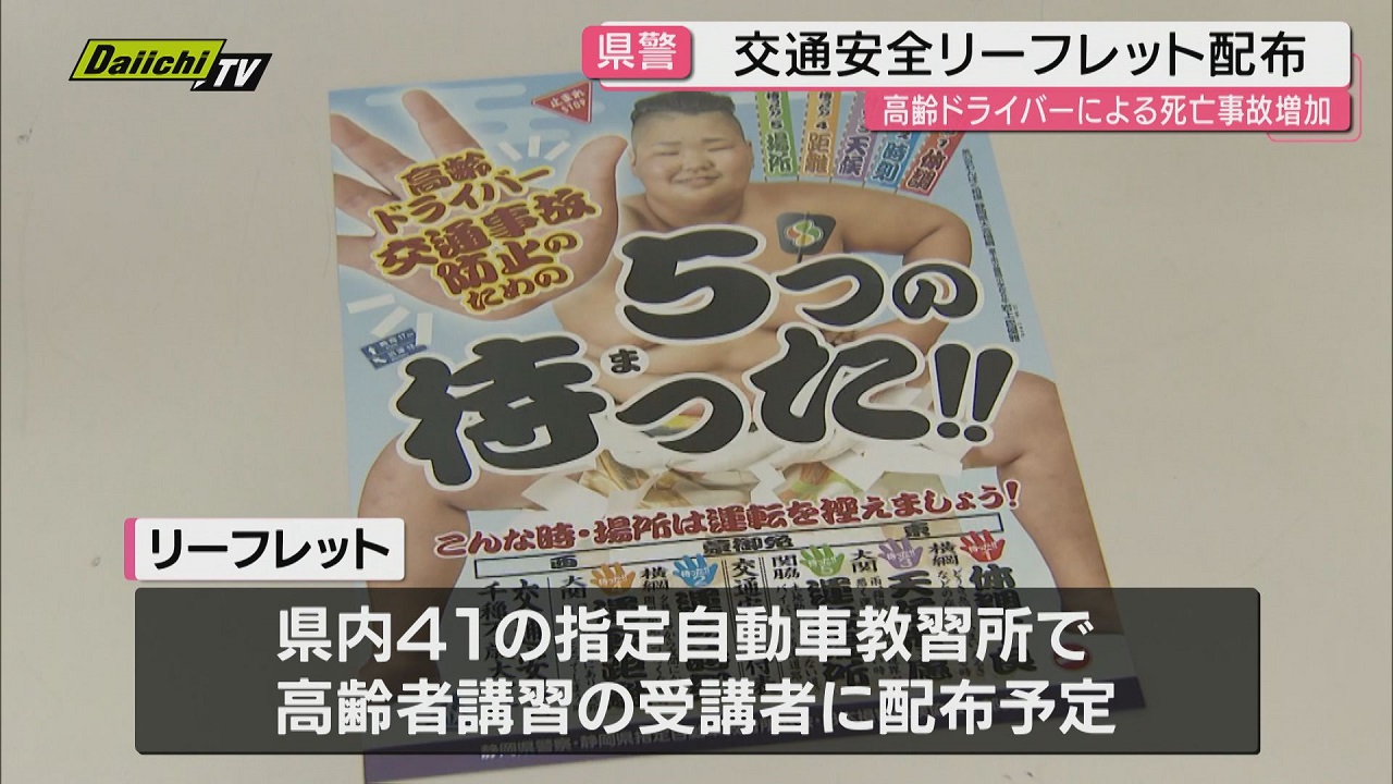 高齢ドライバーの死亡事故増加 自動車教習所で交通安全リーフレットを配布(静岡県警)