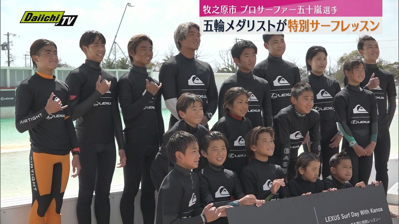 東京オリンピック銀メダリストのプロサーファーによる特別レッスン、レクサスサーフデーが20日、牧之原市で行われました。