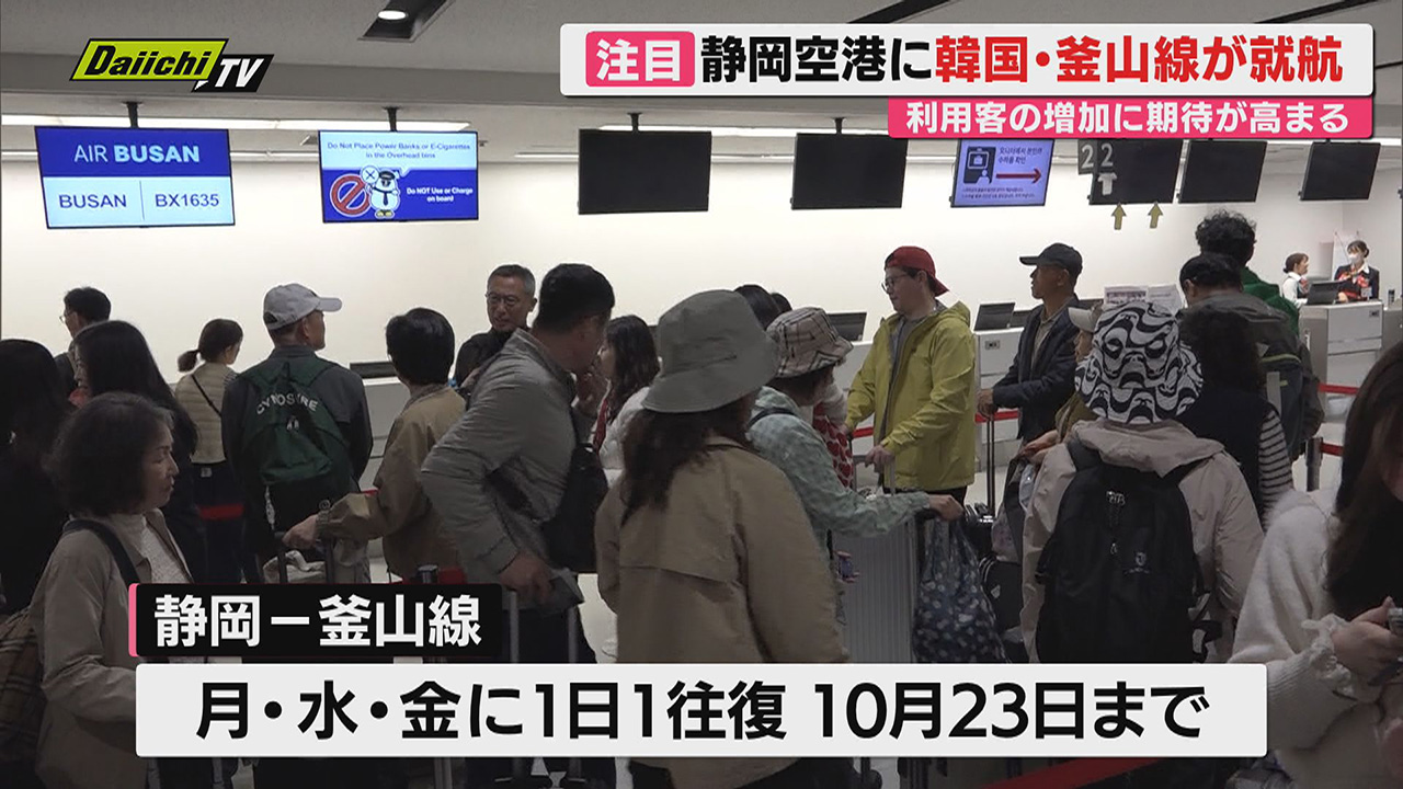 静岡空港と韓国・釜山を結ぶ路線が新規就航し、第一便が30日、静岡空港に到着しました。