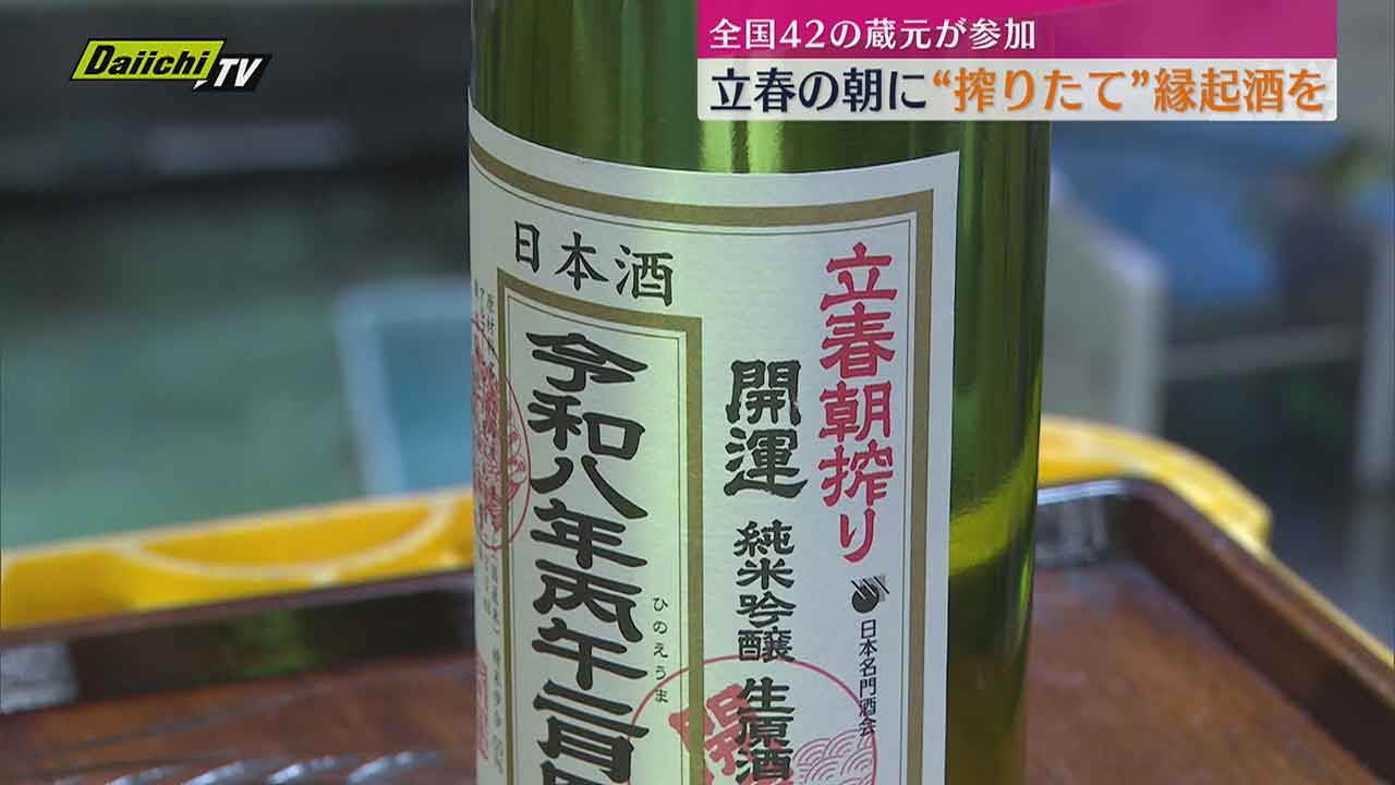 立春の2月4日、掛川市の蔵元で夜明け前に搾った縁起物のお酒「立春朝搾り」の瓶詰め作業が行われました。