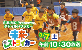 3/7(土)午前10時30分放送「SUUMO Presents チャイルドサッカー 未来ストライカー」