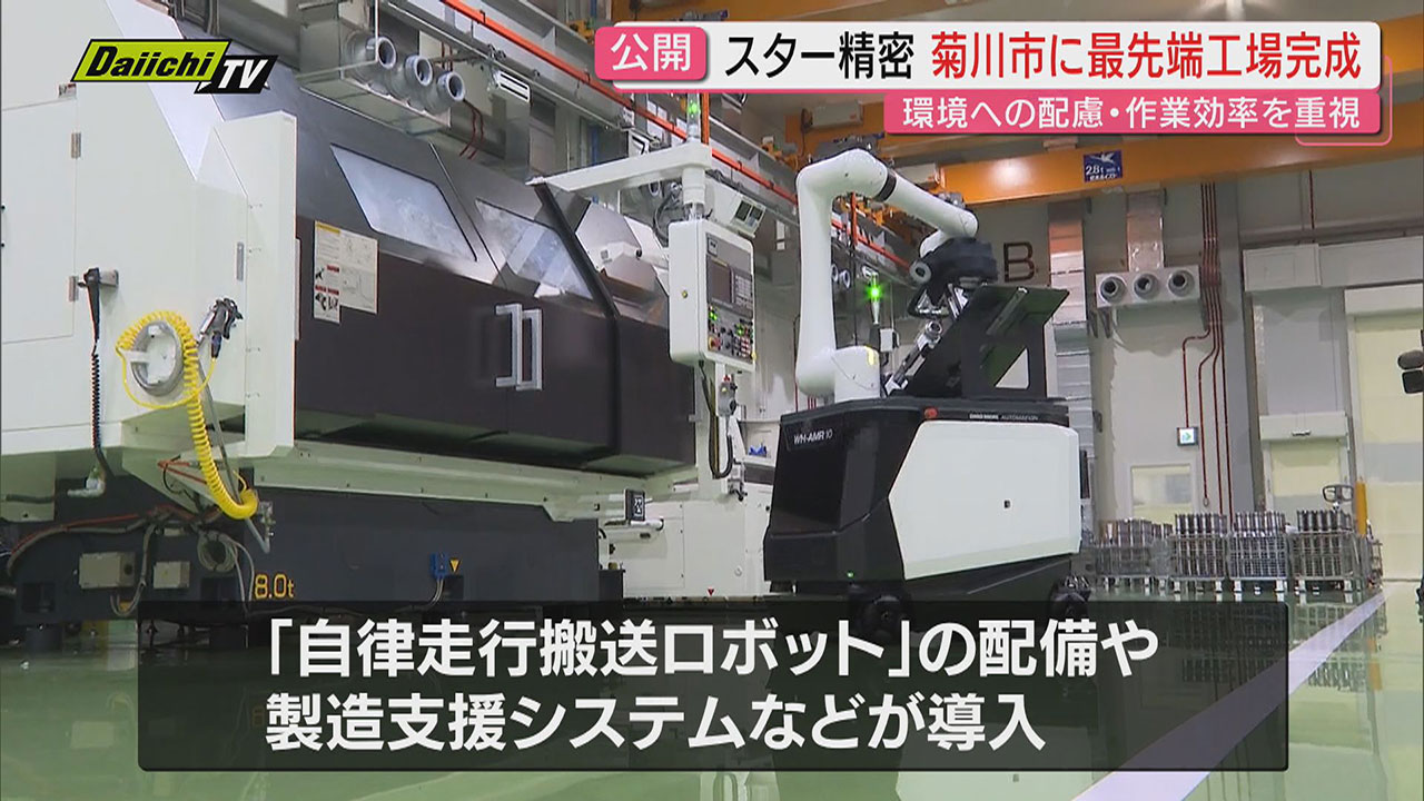 静岡市に本社を置く「スター精密」は環境への配慮と製造の効率性を両立した最先端の工場を菊川市に建設し、5日、関係者に公開しました。