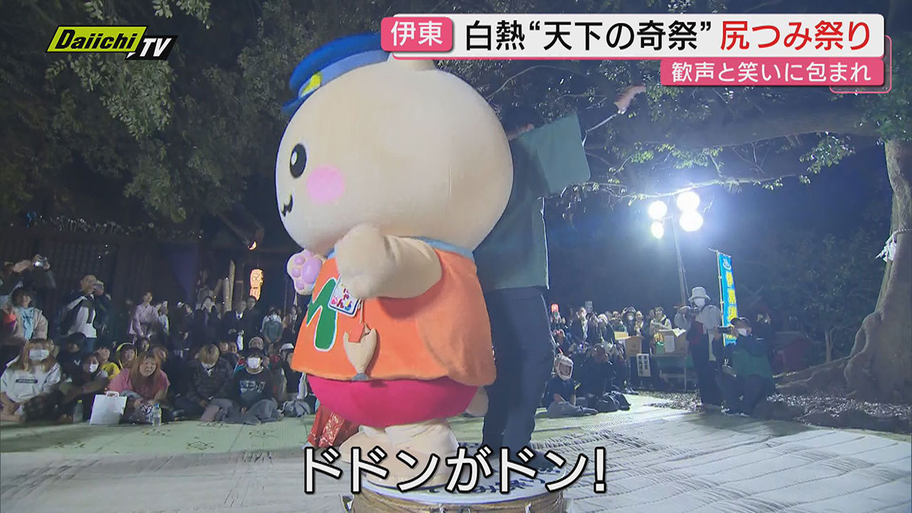 伊東市で、10日夜、天下の奇祭として知られる「伊東温泉尻つみ祭り」で恒例の人気行事、「尻相撲大会」が行われました。