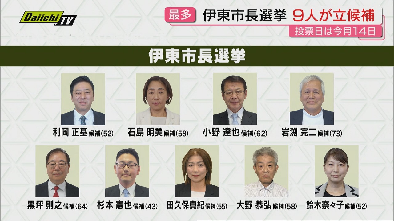 前の市長の失職に伴う伊東市長選挙は7日告示され、過去最多の9人による選挙戦となりました。