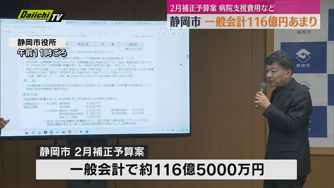 静岡市は2日、物価高の影響を受ける病院を支援する費用など116億円あまりにのぼる2月補正予算案を発表しました。