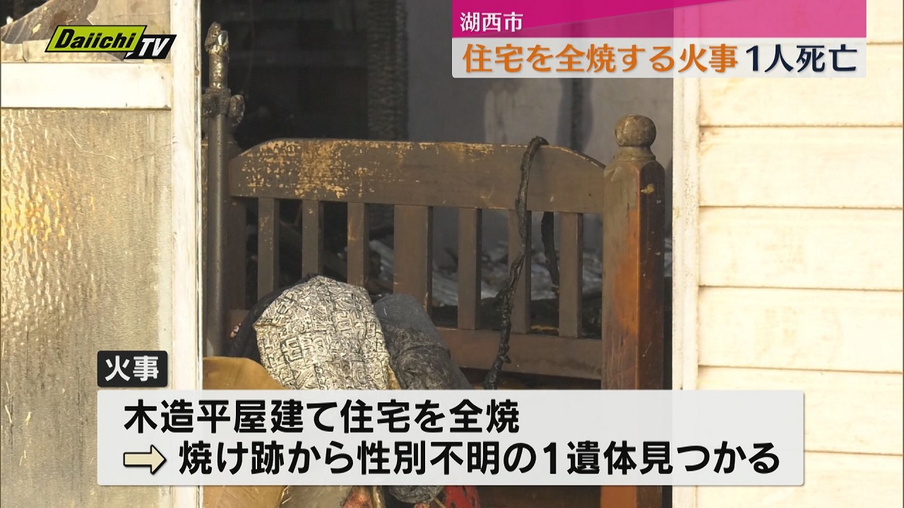 湖西市で住宅1棟を全焼 焼け跡から1人の遺体 警察と消防で出火原因とともに遺体の身元調べる(静岡)
