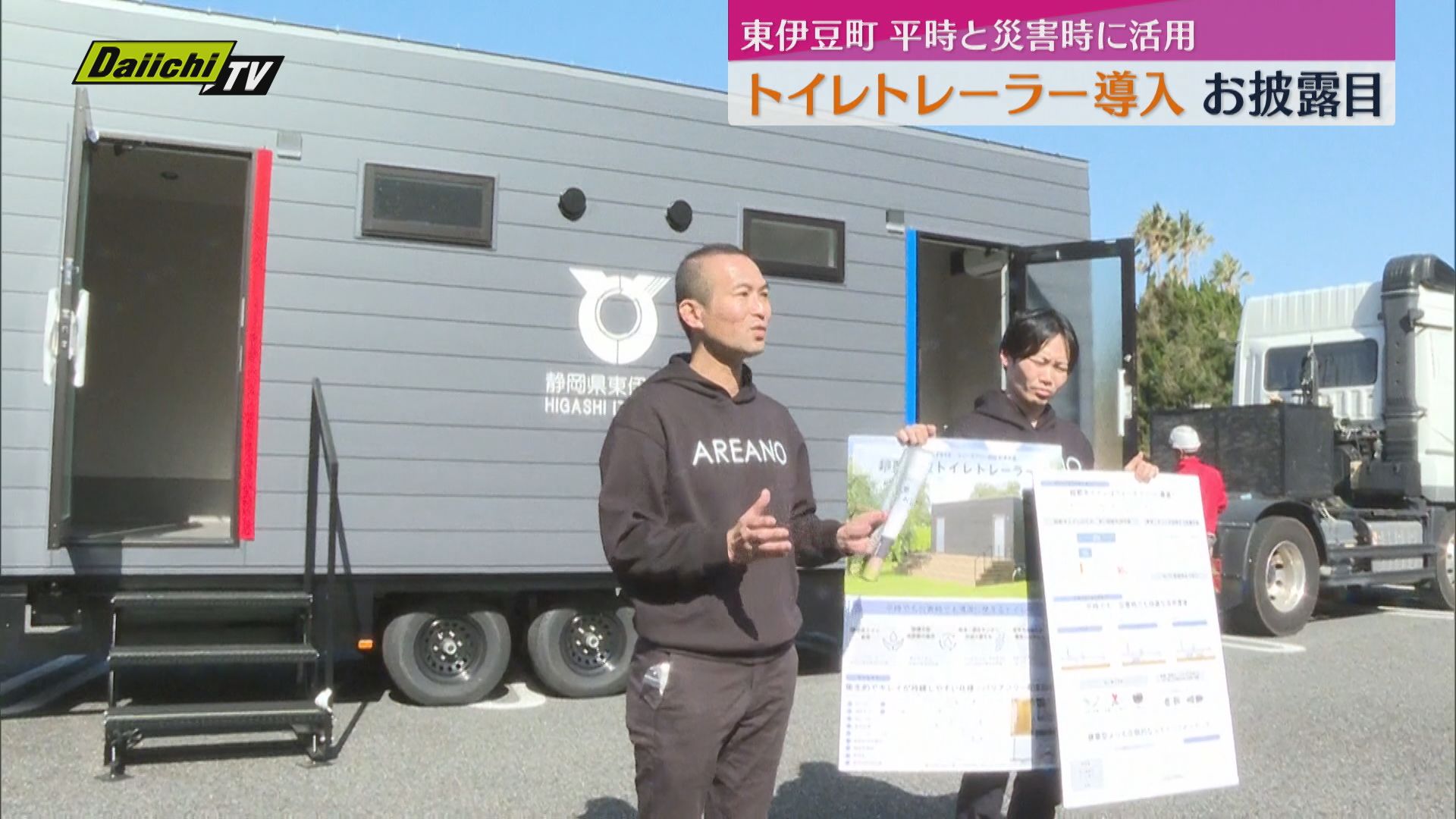 東伊豆町では、平常時と災害時に共用できる「トイレトレーラー」などを新たに導入し5日、公開しました。