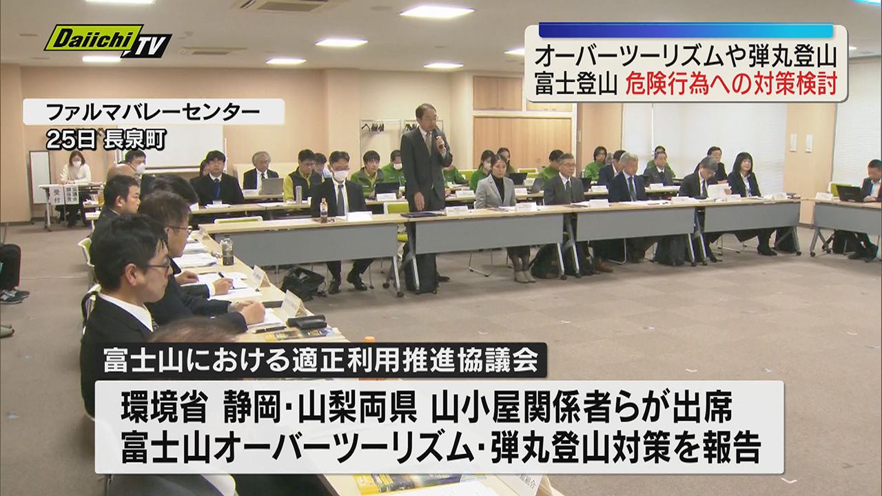富士山のオーバーツーリズムや弾丸登山などの危険行為について対策を検討する協議会が25日、長泉町で行われました。