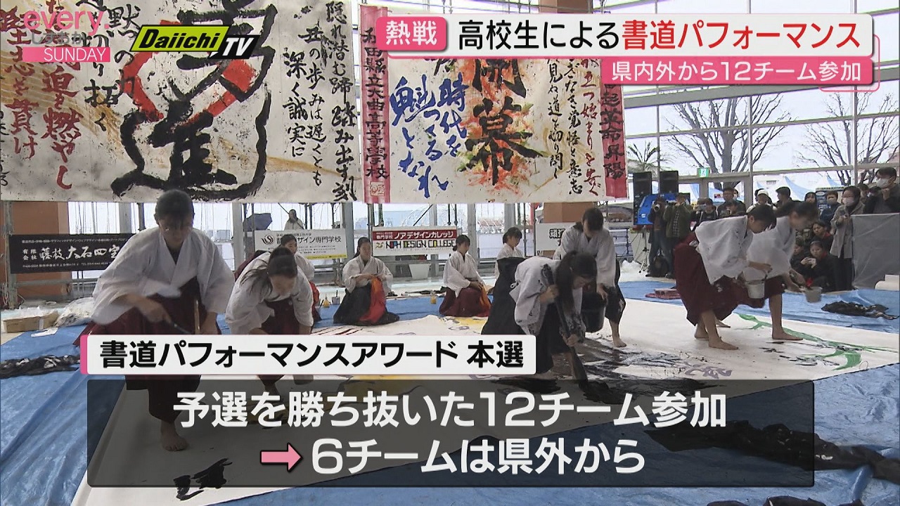 21日、静岡市で全国から集まった高校生の書道チームが技を競う「書道パフォーマンスアワード」が開催され会場は熱気に包まれました。