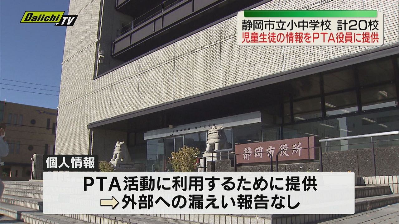 静岡市教育委員会は17日、静岡市立の20の小中学校で児童・生徒の個人情報をPTA役員に提供していたと発表しました。