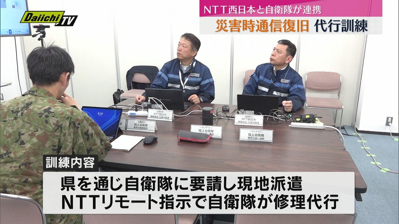 大規模災害時の通信設備の早期復旧を目的にNTTと自衛隊が連携した訓練が、静岡・掛川市で行われました。
