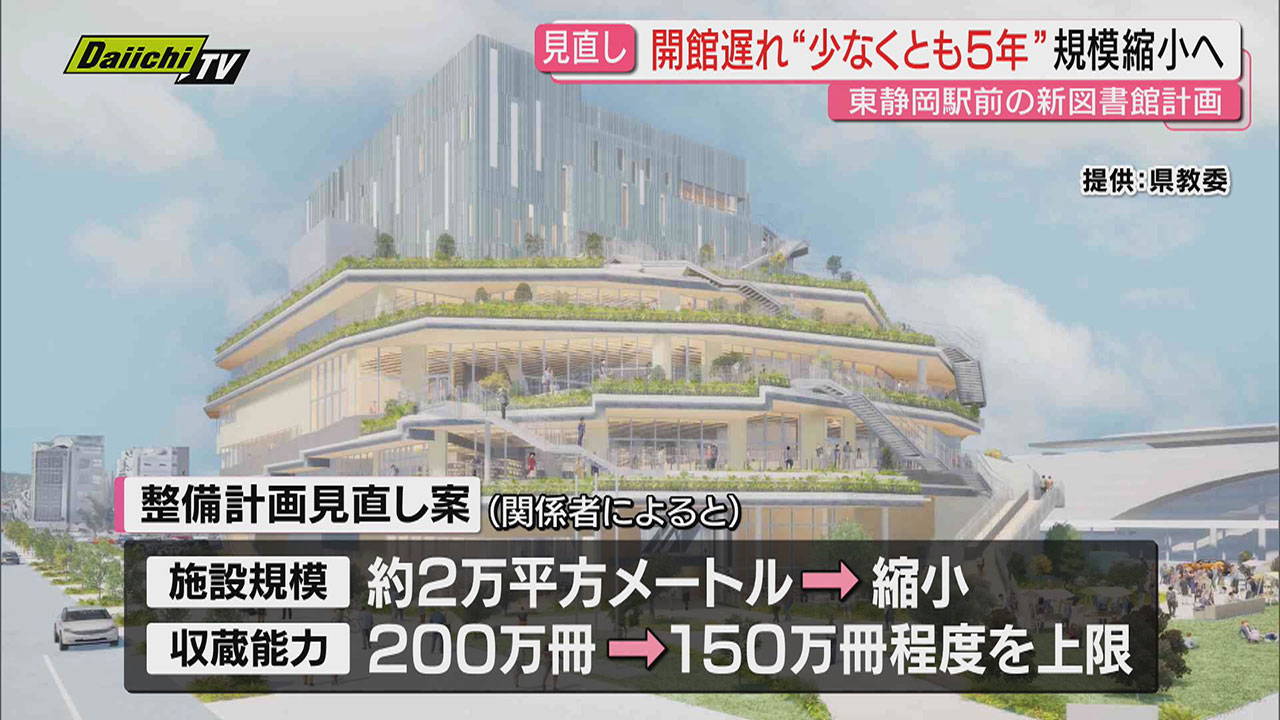 新県立中央図書館の整備計画の見直しについて、静岡県は21日、県議会側に、開館時期の遅れや施設の規模を縮小する方向性を説明しました。