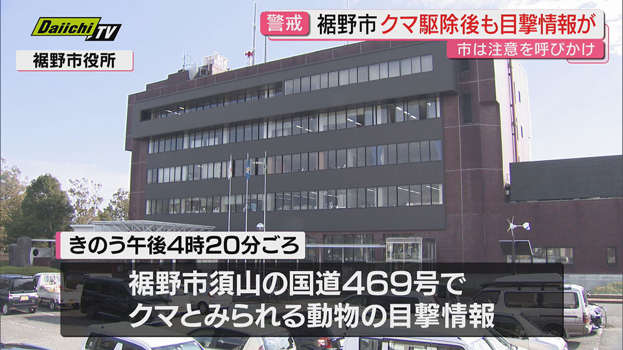 静岡・裾野市は20日、裾野市須山の国道469号でクマと見られる動物の目撃情報があったと発表しました。付近ではクマ1頭が捕獲されたばかりでした。