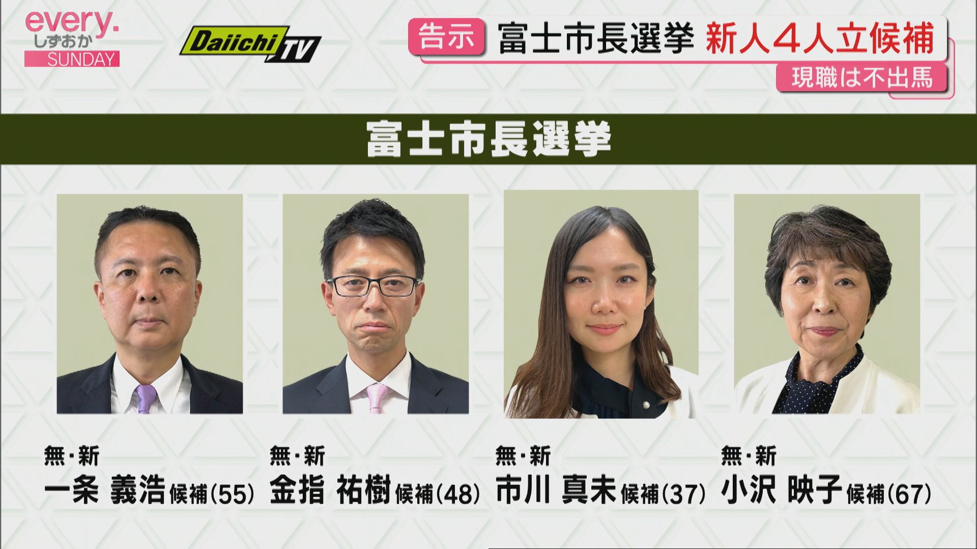 任期満了に伴う富士市長選挙 現職の不出馬で新人4人による選挙戦に(静岡・富士市)