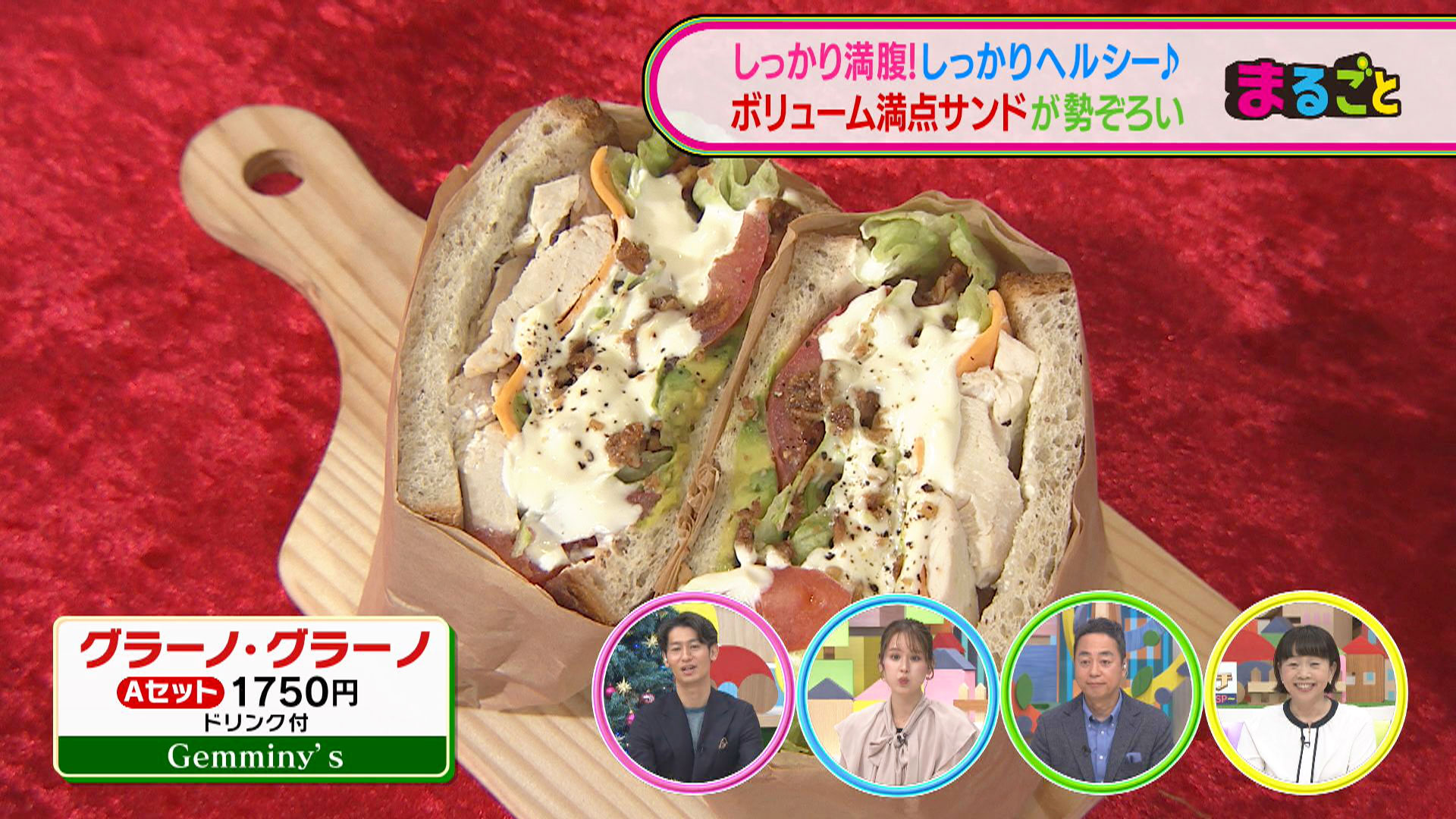 「トレンド」バックナンバー トレンド 2025年12月03日 (wed) ボリューム満点! たっぷり具材のごちそうサンド♪ 【Gemminy's】 静岡市葵区伝馬町10-9 ■グラーノ・グラーノ(Aドリンクセット)…1,750円 ■HOME MADE GRANOLA メープル…1,300円 コーヒー・カカオ・アップルシナモン…各1,390円 ■Holiday Clubhouse Sandwich ベーコン&チキン(Aドリンクセット)…2,000円 ツナ&プロシュート(Aドリンクセット)…2,000円