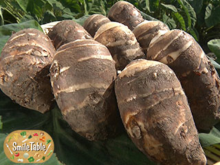(2)里芋は皮ごときれいに洗い、水気をしっかり切っておく。