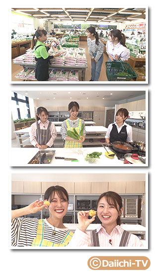 ・各JAファーマーズマーケットに出荷された新鮮な県産農畜産物(栗・新米・青梗菜・秋ナス・里芋など)を購入し、MCの二人が購入した農畜産物を使って料理する。
