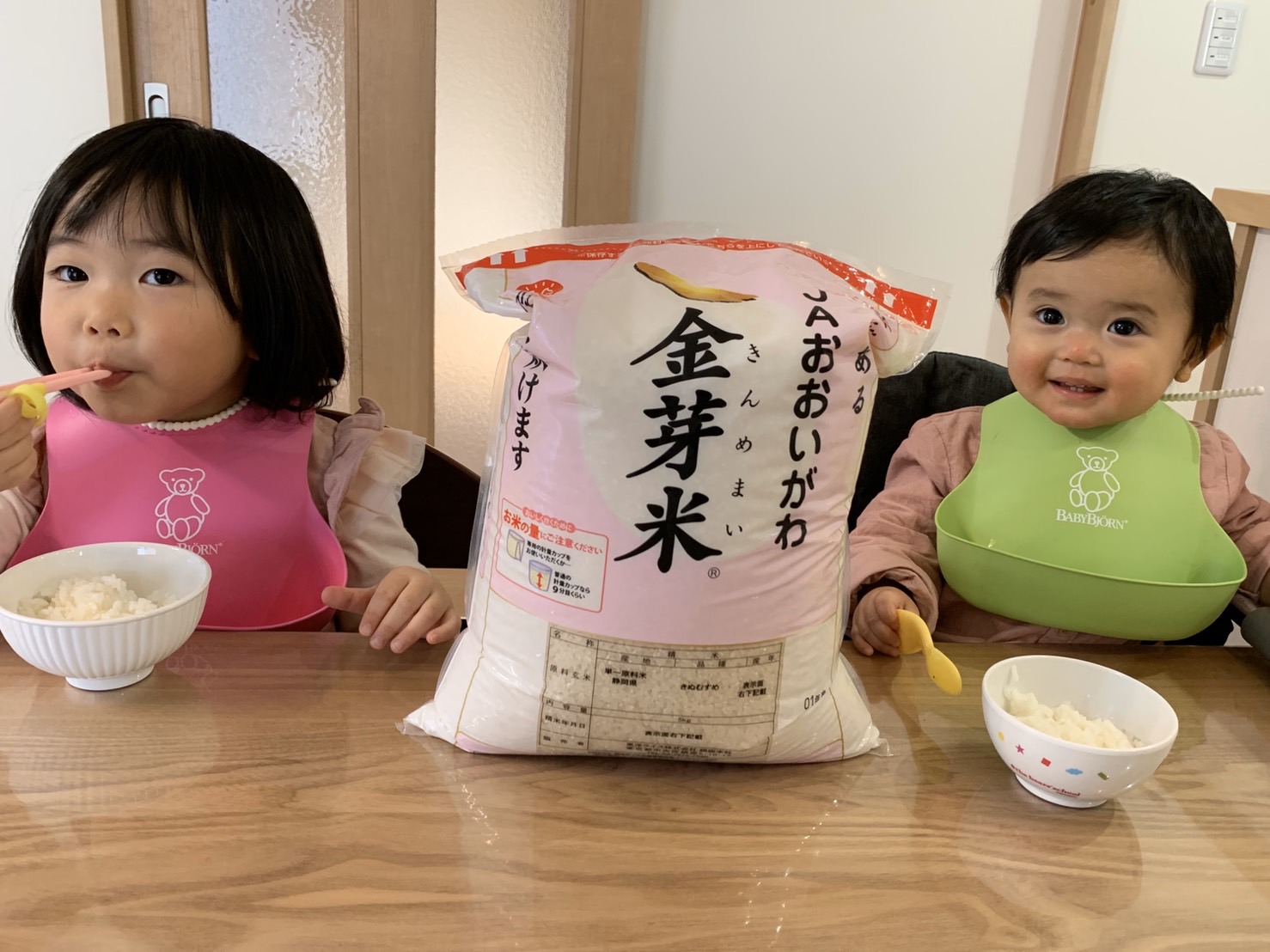 栄養いっぱいの「金芽米」を食べて、お父さんにみたいに大きくなりたいな。