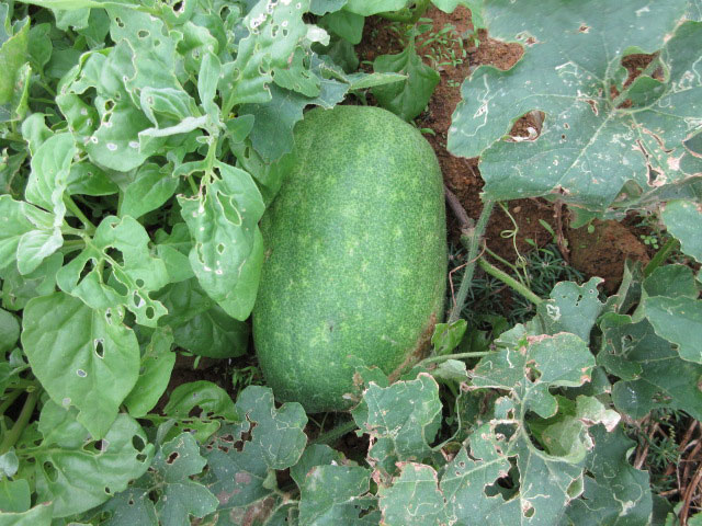 「冬瓜」の収穫をしました。例年なら8月には収穫できるのですが、今年は6月の長雨のためか発芽が遅れて、10月にやっと収穫できました。