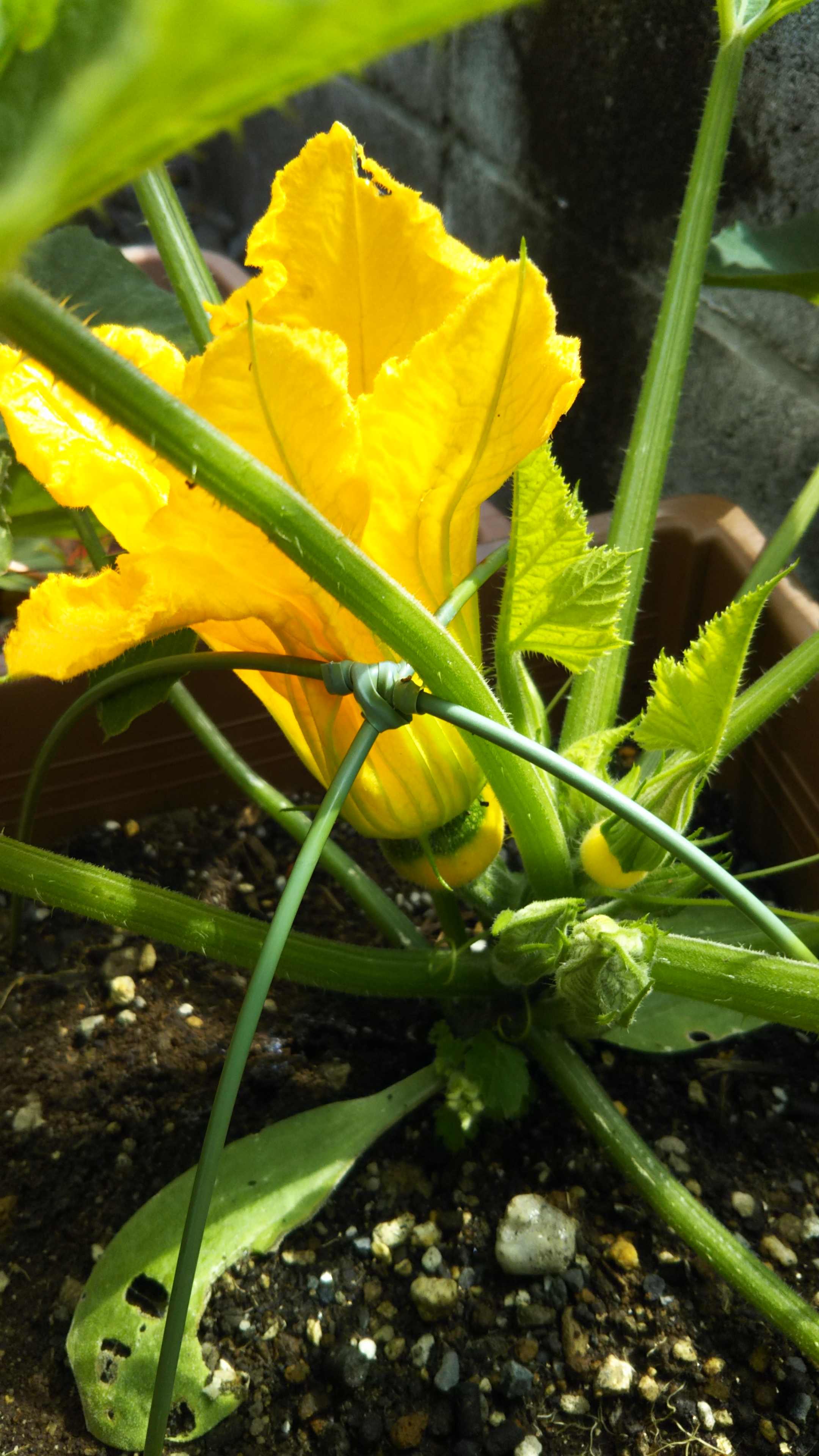初めて ズッキーニ栽培しています 雄花と雌花の咲くタイミングのズレに 悩んでいます