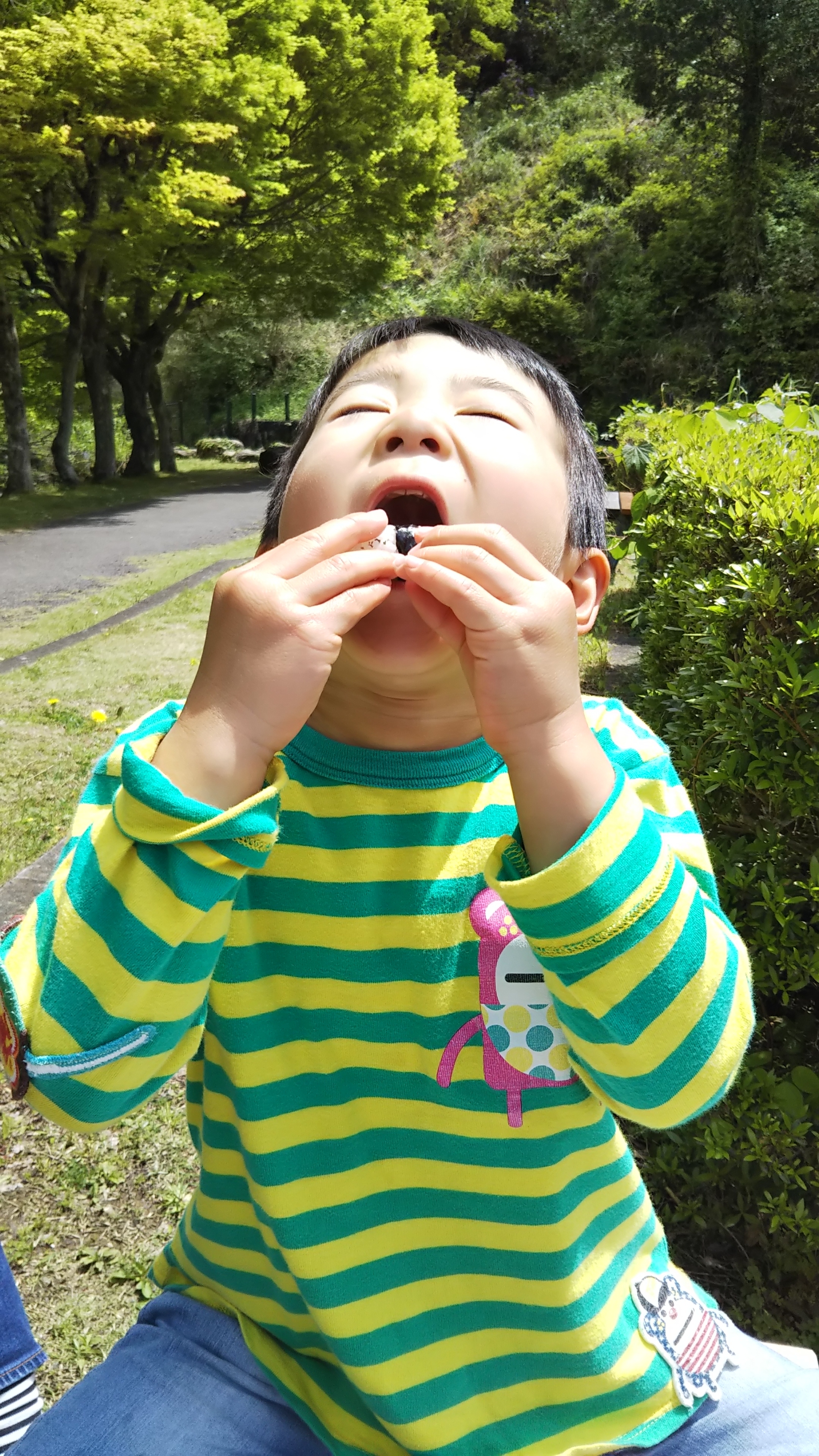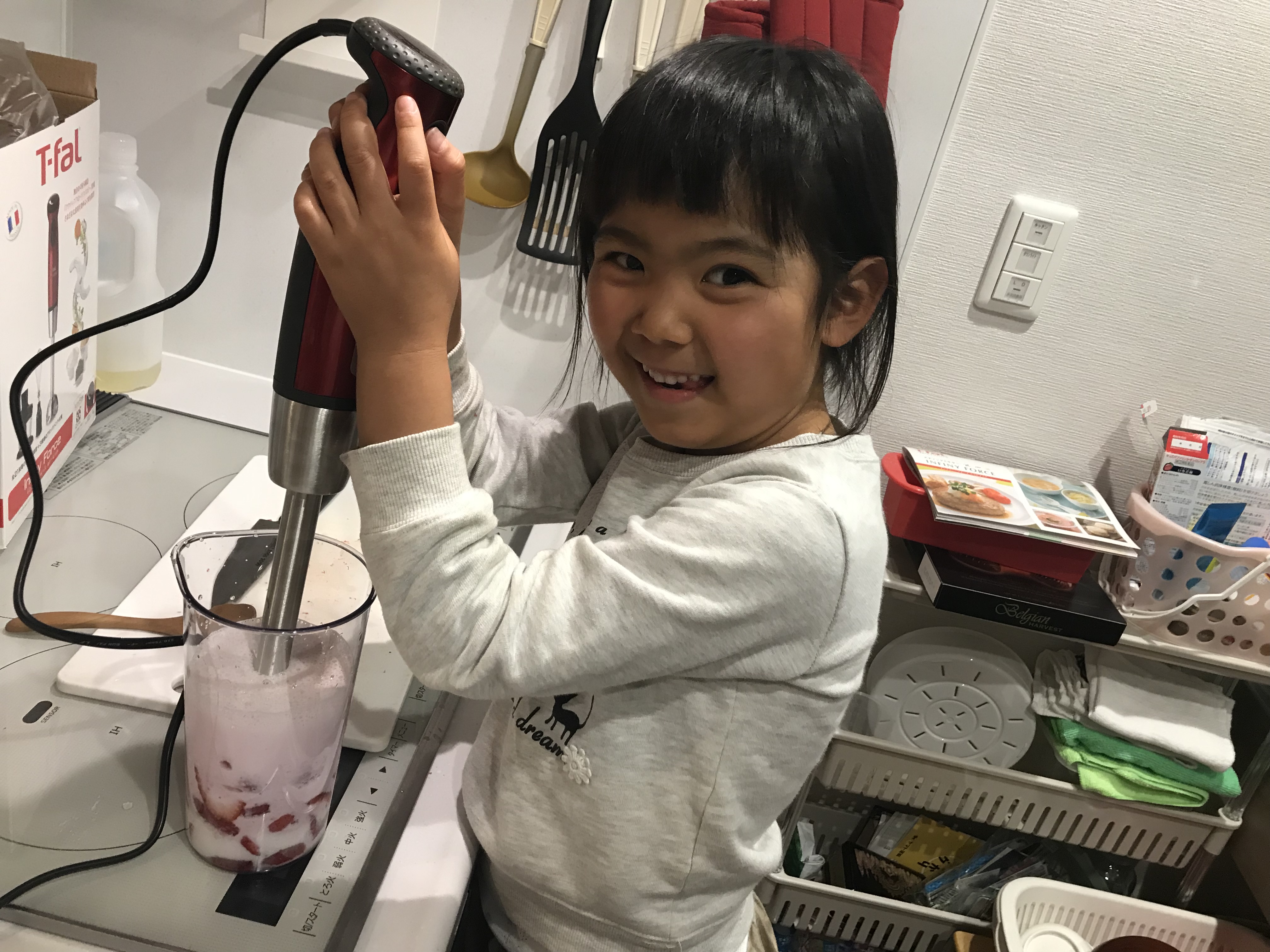 お料理のお手伝いブームの長女。ばぁばからいただいたイチゴでお料理のお手伝い。