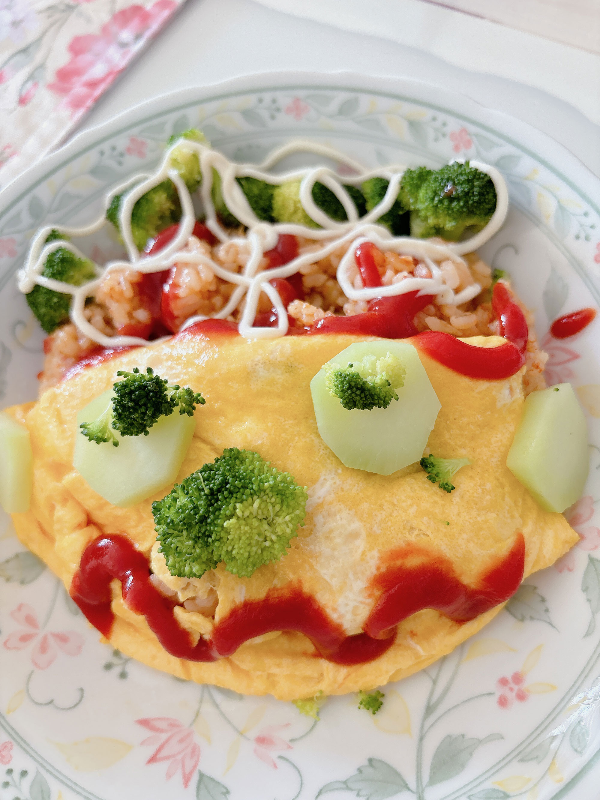 50歳を過ぎた夫婦だけの生活。リモート飯ももう飽きたかな〜?でもたまには、可愛くこんなオムライスを作りますょ♪
