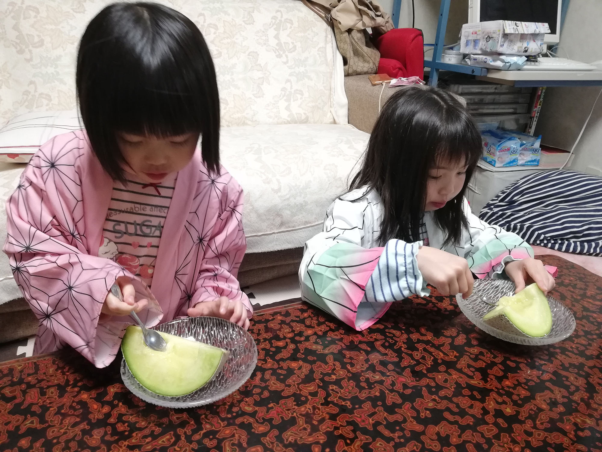 JA静岡市北部じまん市で買ったメロン。贅沢に4等分して食べました!おいしかったー