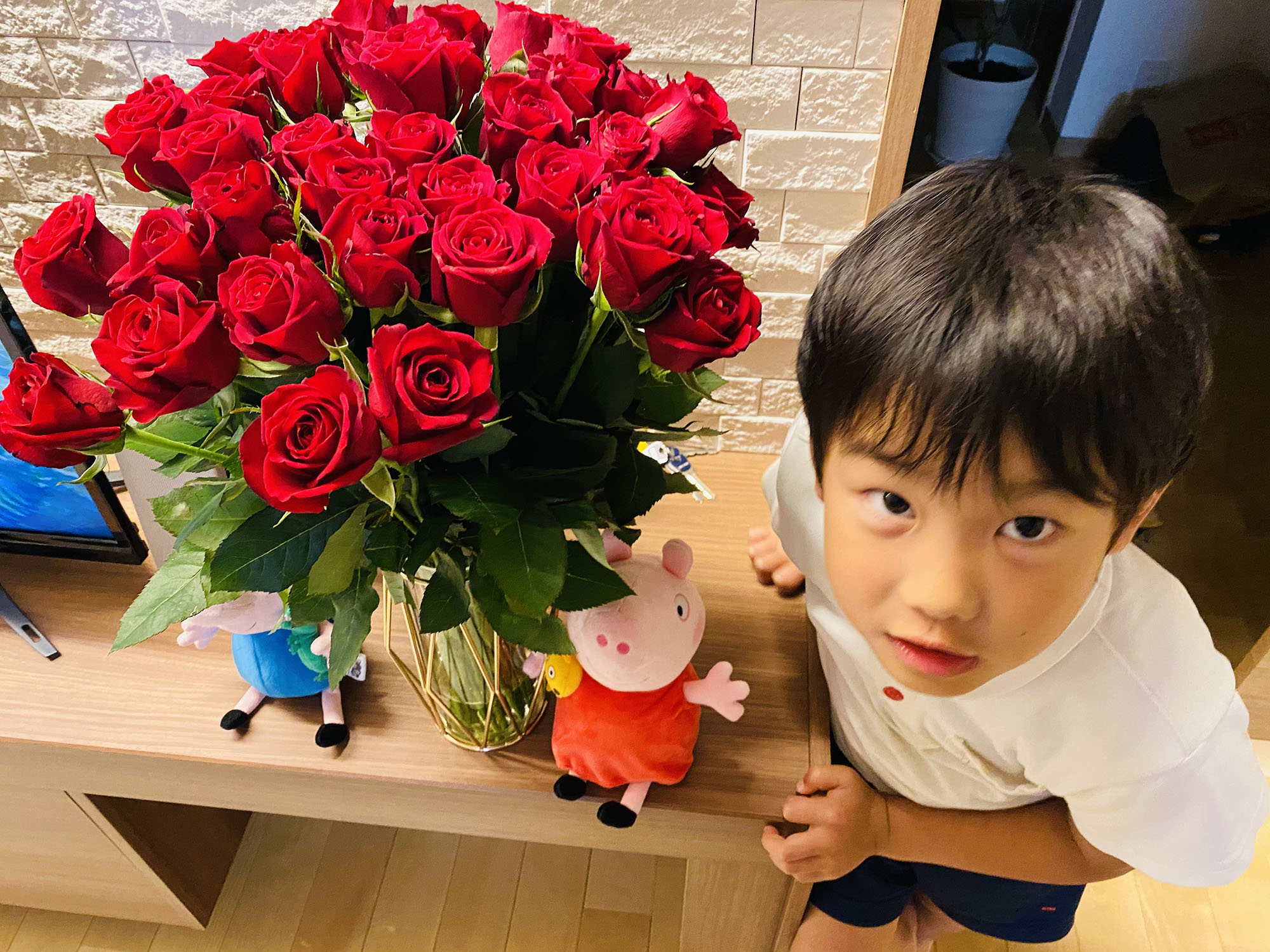 JAしみずのバラがたくさん届いて感激です!息子も驚きと興奮で何枚もバラと写真を撮りました!