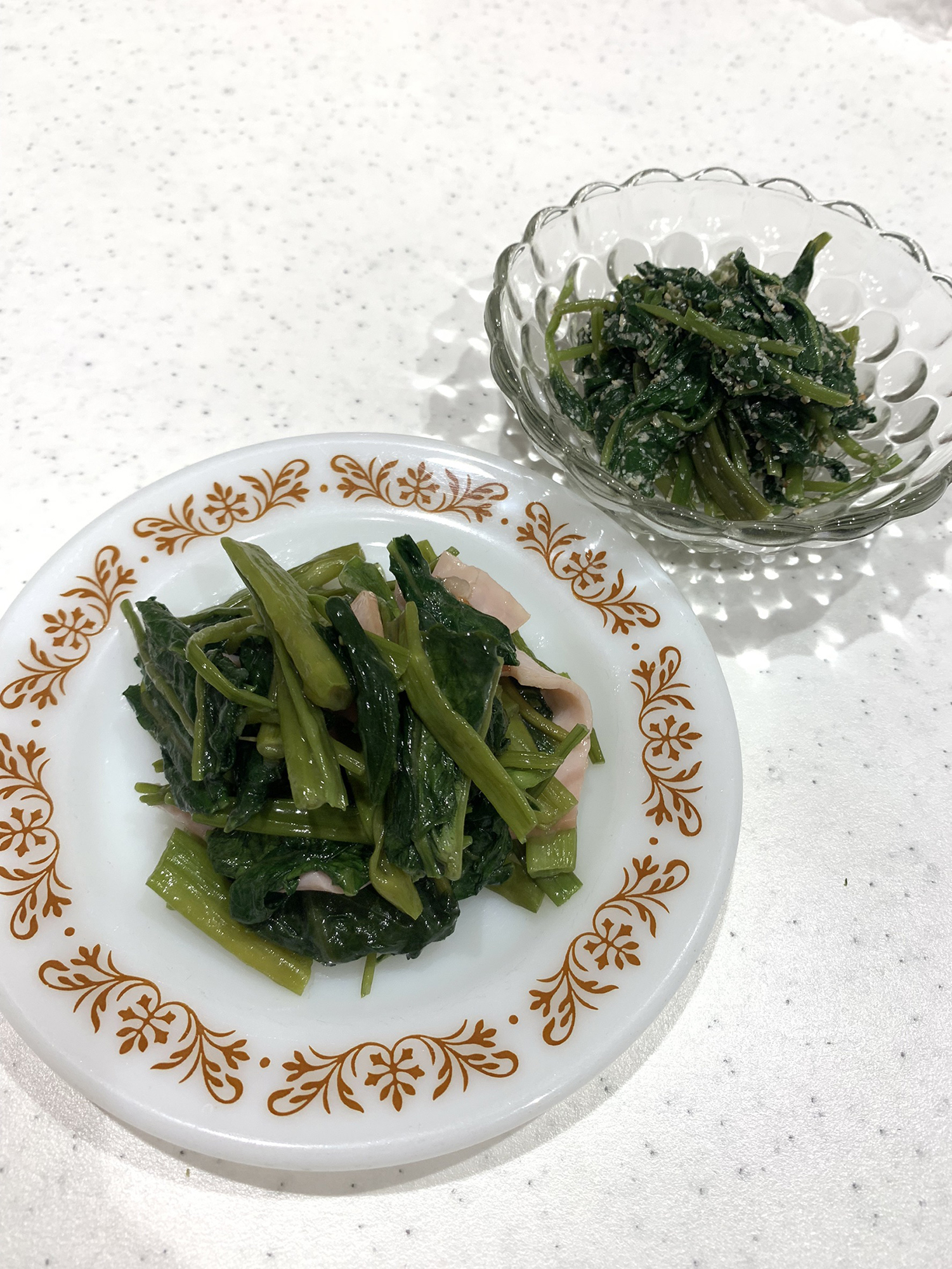 ハムとニンニクで炒め物と、ナムルを作ってみました!!