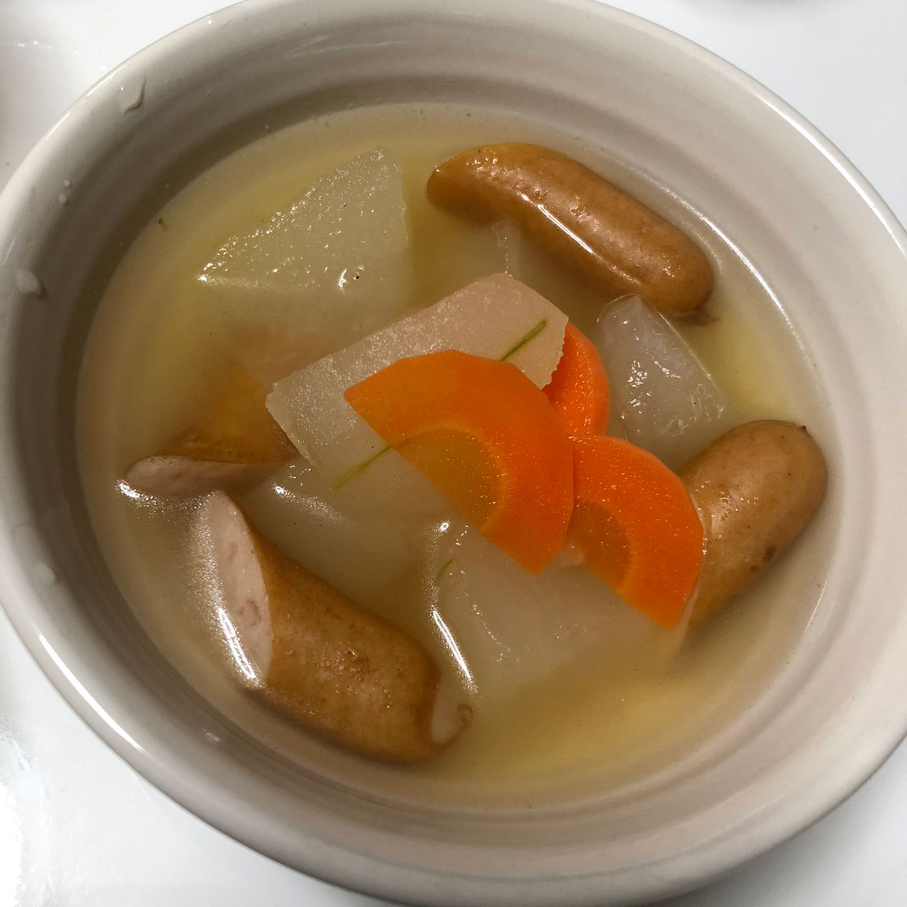 早速妻が洋風スープを作ってくれました。とてもみずみずしくて美味しかったです。冬瓜は、和洋中どのスープでも美味しくいただけますね。