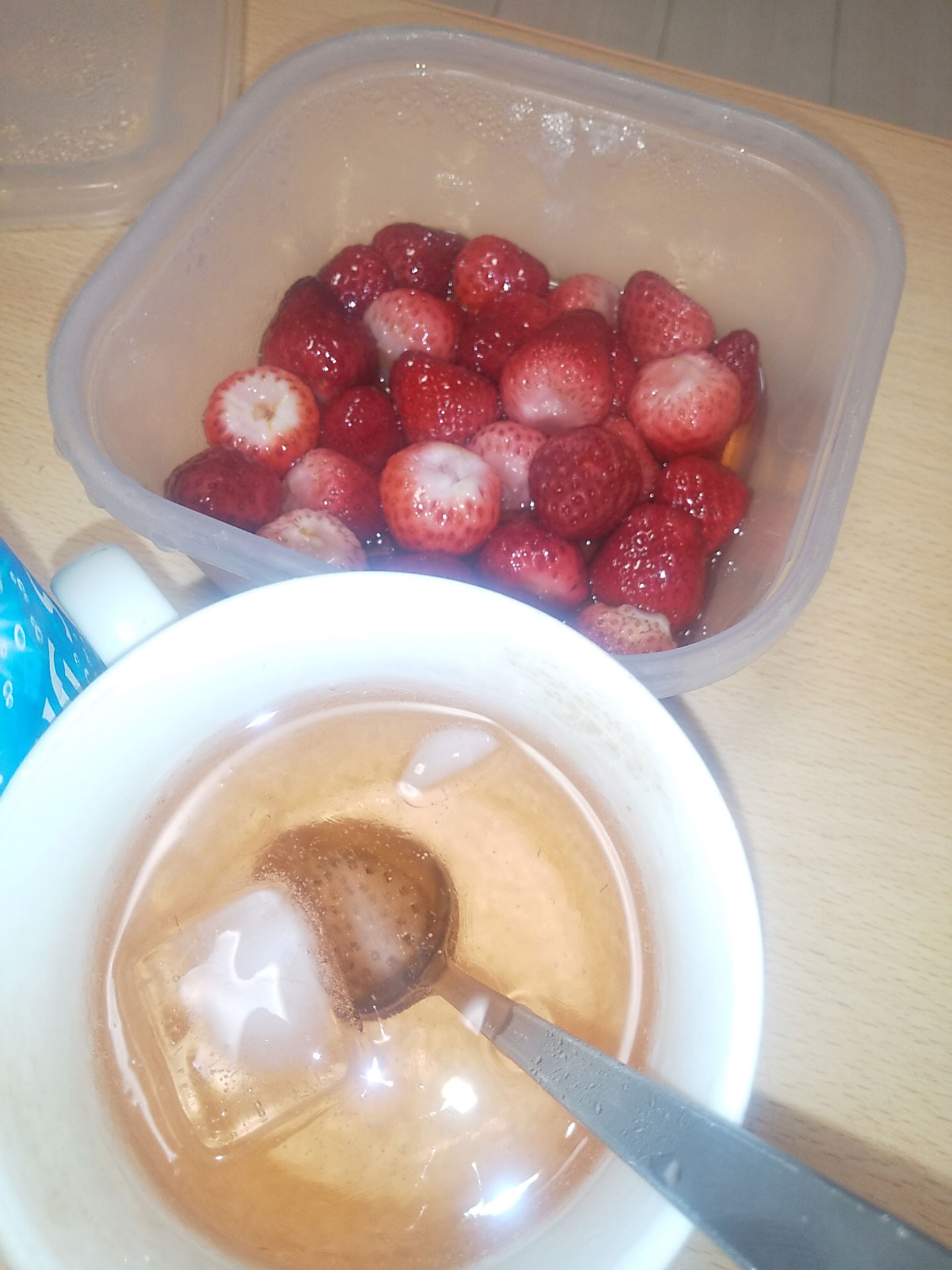 農協で『くだもの漬ける用の酢』みつけたので漬けてみました。炭酸水で割ると涼しげです。