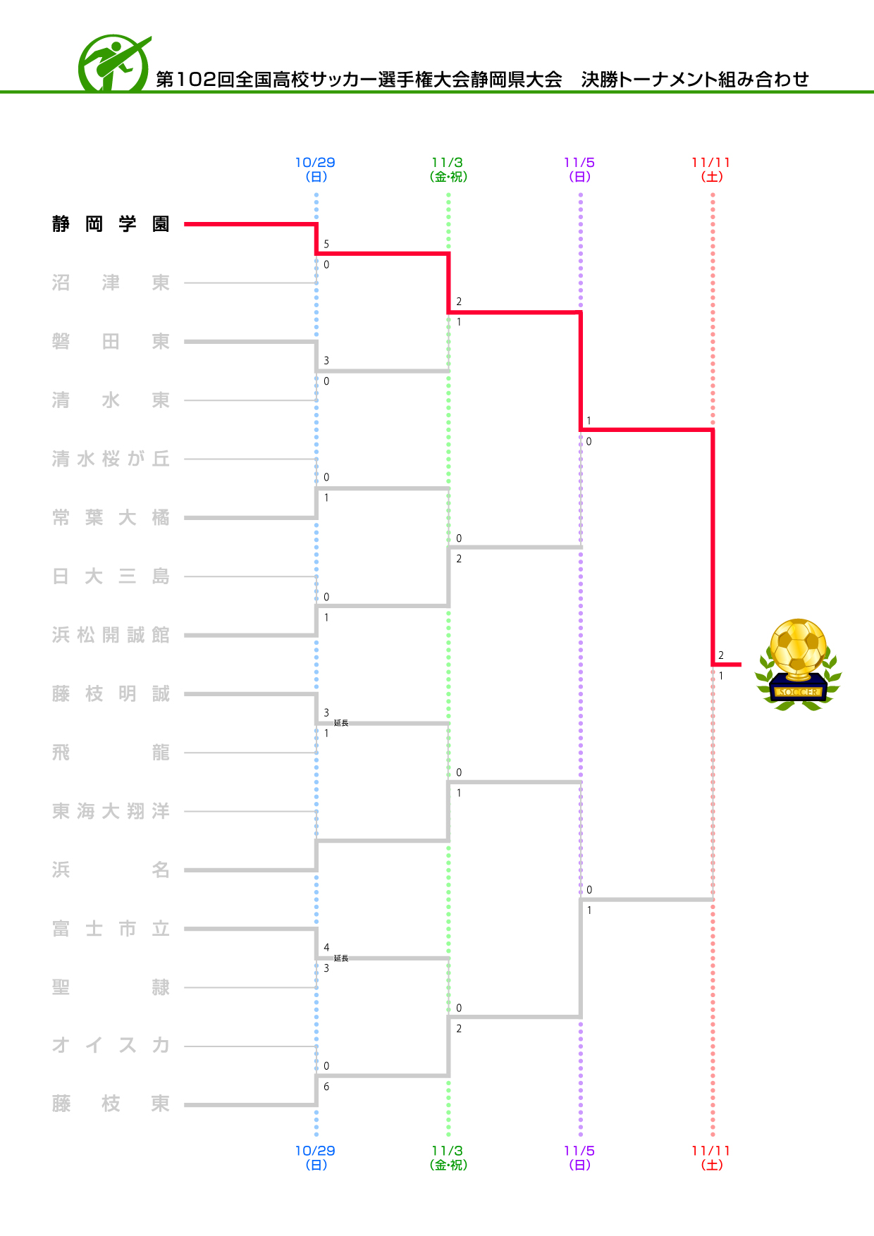第102回(令和5年度)全国高校サッカー選手権大会静岡県大会・決勝トーナメントの結果です。