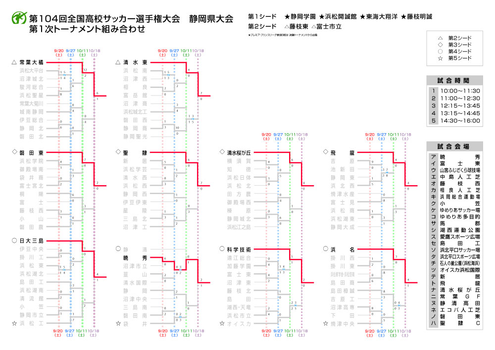 ※静岡学園、浜松開誠館、東海大翔洋、藤枝明誠、藤枝東、富士市立は決勝トーナメントから出場。
